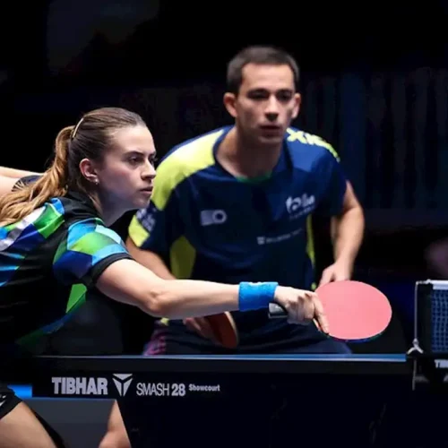 Os mesatenistas brasileiros Hugo Calderano e Bruna Takahashi estrearam com vitória nas duplas mistas do Europe Smash, em Malmo (Suécia),…